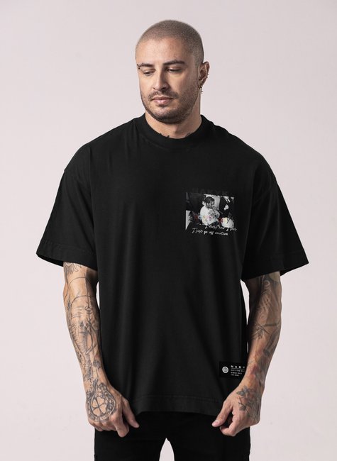 A Camiseta Asap é confeccionada em malha de algodão e sua modelagem é no estilo oversized. Possui gola com 2,5 cm de altura feita de ribana. A peça possui estampa na frente em DTF. E contém uma etiqueta conceito próximo à barra e nuca.
