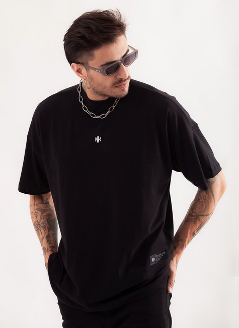 A peça possui modelagem oversized, que traz um shape mais amplo para o look. Ou seja, uma modelagem assim é maior nas dimensões de comprimentos e larguras do que camisetas convencionais. Portanto verifique a aba de tamanhos para fazer a melhor escolha. Possui gola de ribana com altura de 2,5cm.